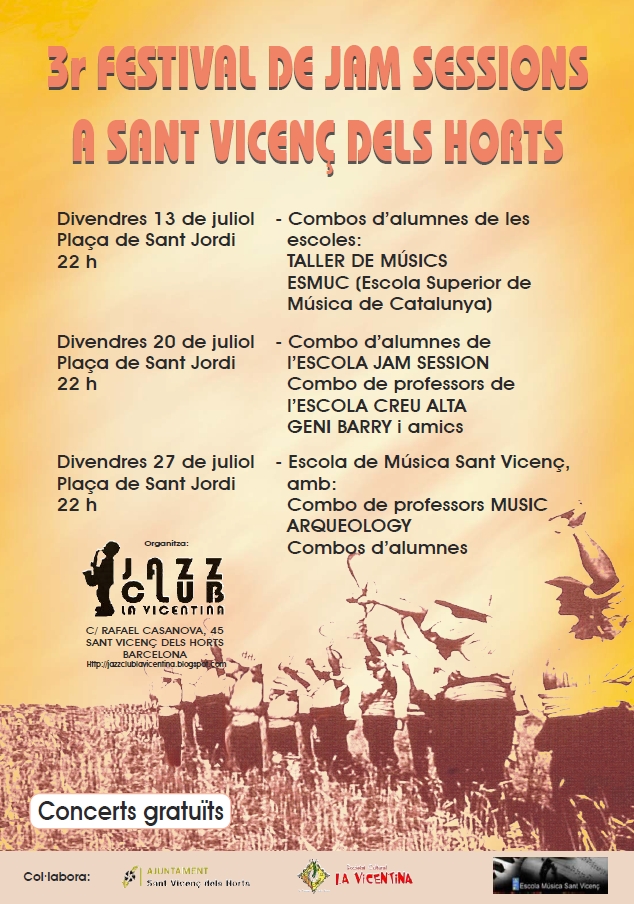 Doncs el divendres 14 de juliol em vaig deixar caure per Cerdanyola concretament al museu d'història, enclavament d'un anterior poblat ibèric a Ca n'Oliver. En un espai municipal, un magnífic pati exterior amb l'entrada gratuïta i amb un munt de cadires per omplir, la qual cosa va succeir posteriorment. Ple de gom a gom per escoltar Jazz i músiques del con sud, concretament de l'Argentina natal del Guillermo. Un projecte que ja ha vist la llum en disc, i així és que me'l va donar en acabar el concert. Disc anomenat "Guillermo Calliero S.A.P. Vol 1", de South American Project i si parla de Vol1 vol dir que al menys n'hi haurà un altre. Vaig arribar d'hora i així és que em vaig poder situar a la primera fila, al costat de dos aficionats ja granadets més o menys com jo, els quals em van semblar força entesos en la matèria, tot i que a ells, als de Cerdanyola, els tira més el Blues que el Jazz.